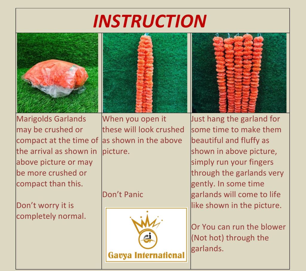 • Color : Orange ,5 strings Bulk Set Each order comes with 5 Marigold Flower garland strings. Each garland is roughly 5 Feet long, so you’ll have plenty of vines to decorate your amazing party.
