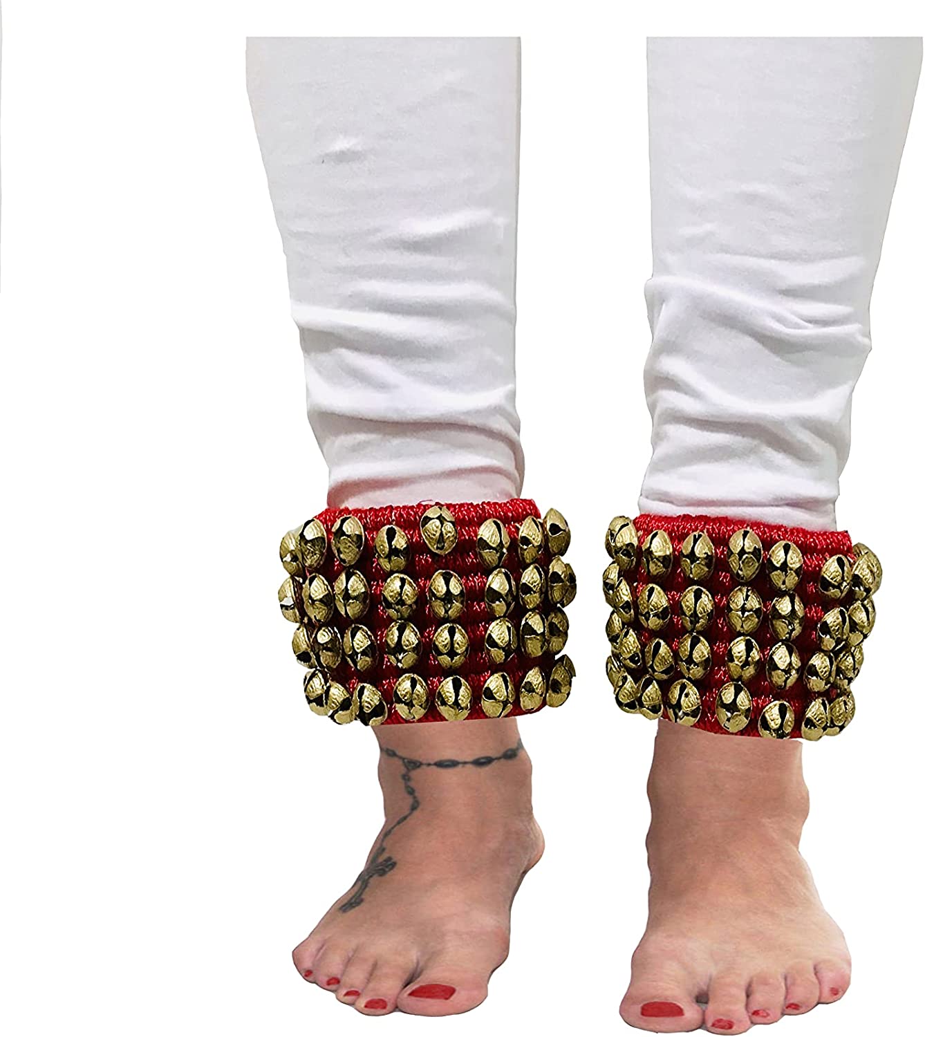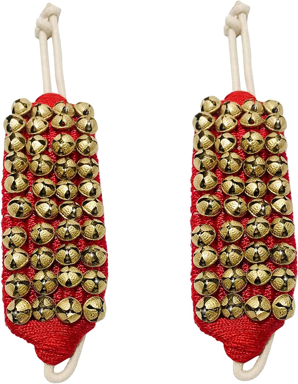 • Its is a Four line Red ankle bell pair with each ankle bell having about 40 brass bells. This item has high quality big brass bells on the cushioned cloth pad – professional quality ankle bell Very good sound